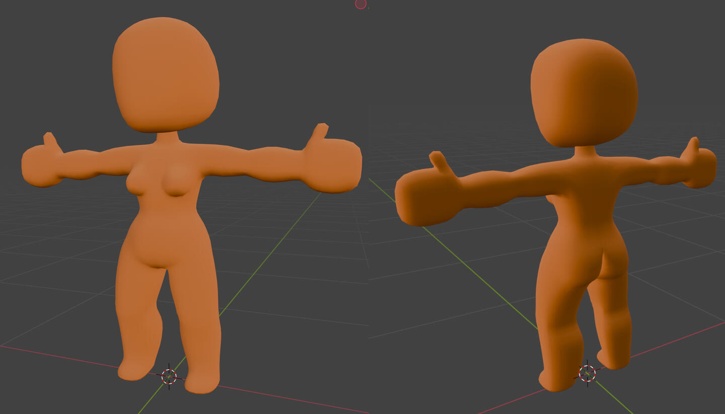 A front and back view of your character on an abstract background with your choice of wardrobe or design notes.